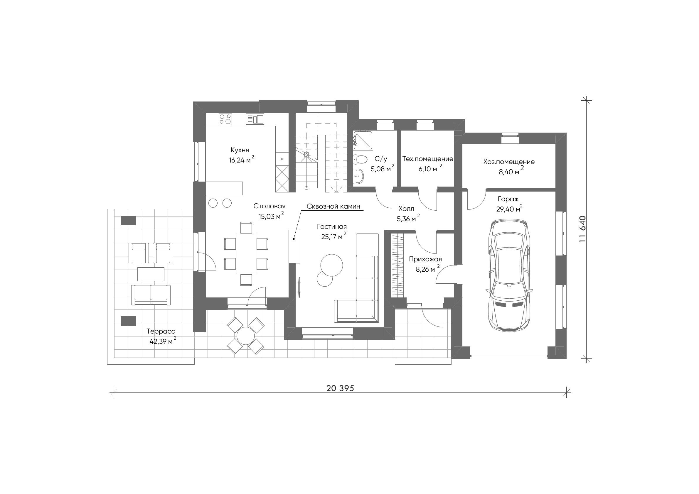 Большая кухня-столовая 31,27 м², гостиная 25,17 м² со сквозным камином. Комнаты можно объединить или при желании разделить. Это пространство, несомненно, станет центром притяжения всей семьи. А 4 спальни и 2 санузла — это удобная и актуальная классика. В доме предусмотрены просторная терраса, балкон и гараж- все для того, чтобы наслаждаться жизнью на природе. Спокойная загородная жизнь прямо в городе с городской пропиской