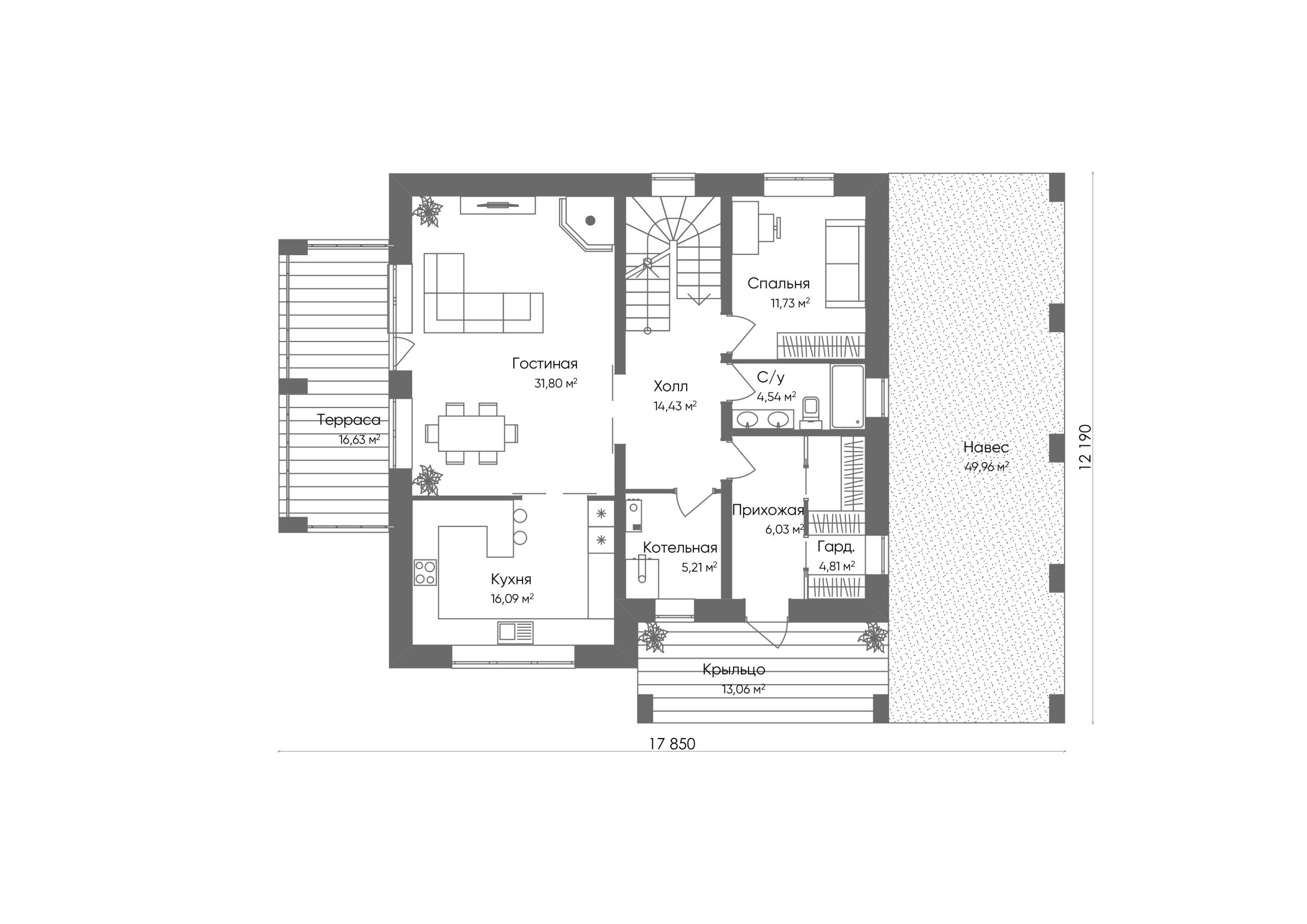 Большая гостиная 31,8 м² с кухней 10,09 м², которые можно объединить или при желании разделить. Это пространство, несомненно, станет центром притяжения всей семьи. А 4 спальни и 2 санузла — это удобная и актуальная классика. В доме предусмотрены просторная терраса, балкон и навес для авто — все для того, чтобы наслаждаться жизнью на природе. Спокойная загородная жизнь прямо в городе с городской пропиской